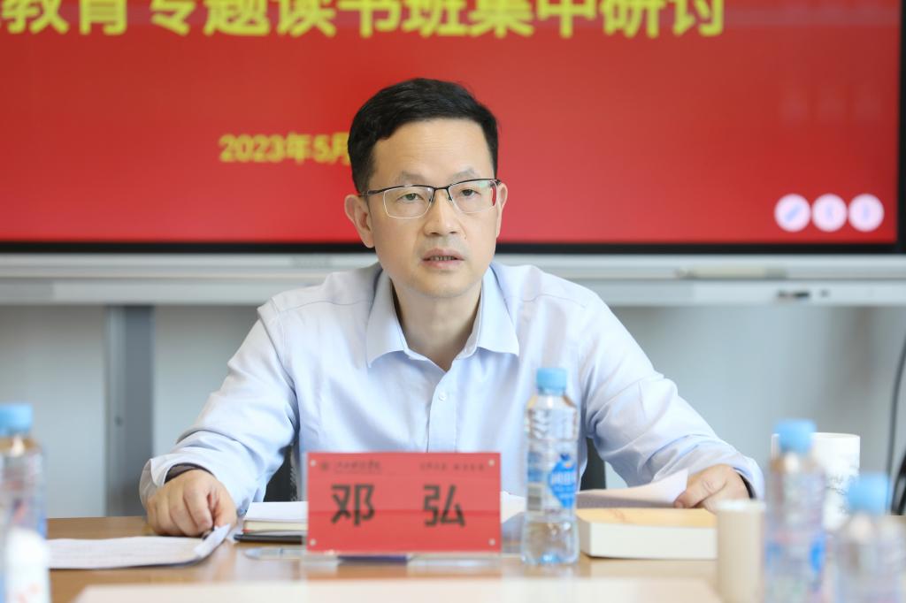 辅导报告会后,邓弘书记在行政北409会议室主持召开集中研讨会。学校党政班子成员参会。