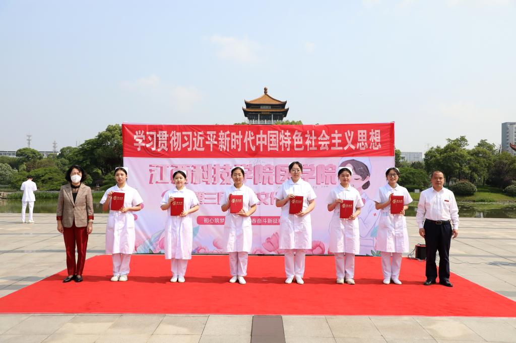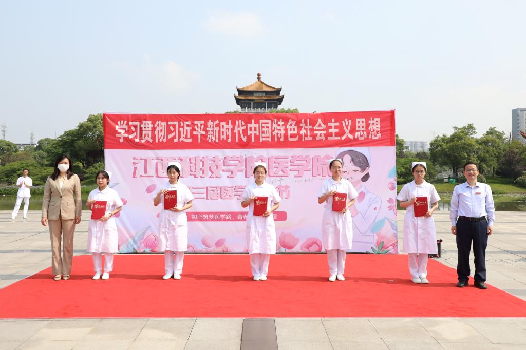 江科网讯(记者 何强江)5月12日,是第112个国际护士节。为弘扬南丁格尔救死扶伤的人道主义精神和为护理事业无私奉献的高尚品质,激励医学生不忘初心,医学院在当天举行第三届医学文化节。校党委书记邓弘、校长张海涛,副校长林素君,校党委副书记、副校长闵桂林,副校长周冰冰,校党委副书记夏拥华等校领导参加活动。
