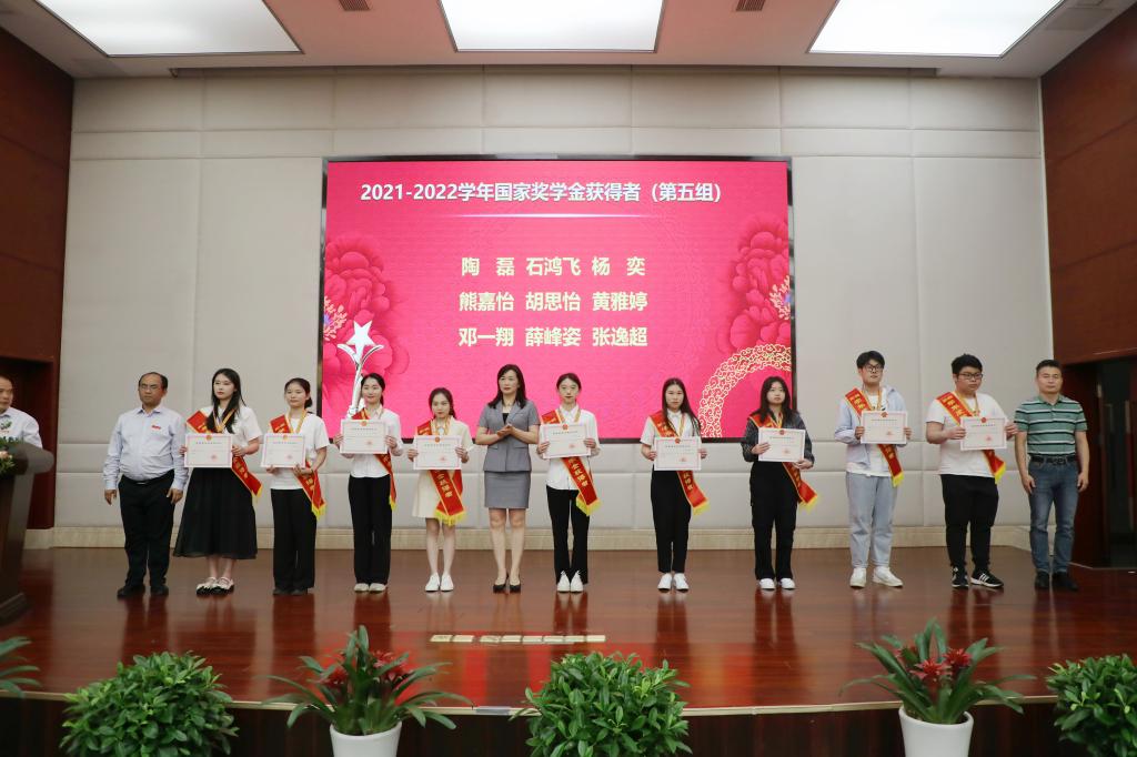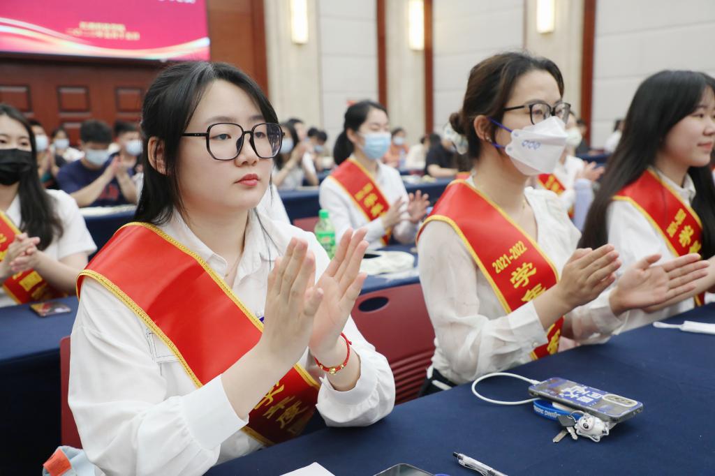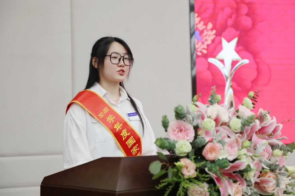信息工程学院桑柳剑、医学院王妃、音乐舞蹈学院李钦作为国家奖学金获得者代表发言,对国家、学校、老师的关怀与培养表示感谢,并与同学们分享学习经历、获奖经验,鼓励同学们珍惜时间,共同努力奋斗,争做新时代合格的建设者和接班人。