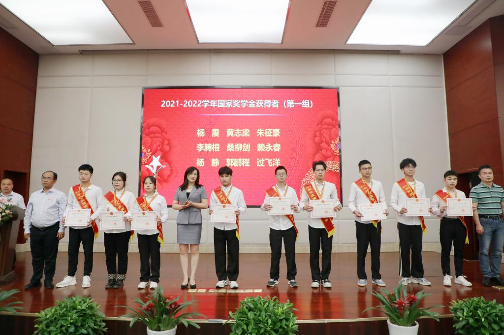 江科网讯(记者 刘莹)5月15日下午,学校在行政南一楼第一会议室召开2022年国家奖学金表彰大会。校长张海涛,校党委副书记、副校长闵桂林,副校长周冰冰、陈辉出席会议。校(党)办、宣传部、财务处、教务处、学工处、团委、学生资助管理中心部门负责人,二级学院院长、教学部主任、学工副院长、学工秘书,2021-2022学年“国家奖学金”获得者及辅导员、学生代表参会。大会由闵桂林副校长主持。