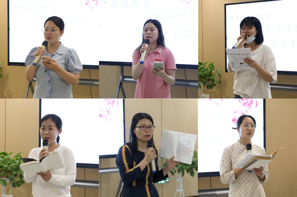 妇联委员、文化与传媒学院教师龚彦艳主持活动。来自文化与传媒学院的廖海湾、体育学院的刘程、教育学院的廖丽婷和何海燕、财经学院的常逢润、图文信息中心的万玲、习研中心的邓安萌、外国语(国际教育)学院的胡红红、马克思主义学院的朱英琼和全秀、文化与传媒学院的李苗苗等十一位老师分别分享了《致青年教师》《永远的西南联大》《非暴力沟通》《正面管教》《养育女孩》《活着》《人世间》《乡土中国》《精神的力量》《中国诗歌入门寻味》《浮出历史地表——现代妇女文学研究》等经典书目,在阅读中回望过去、遇见自己、畅想未来。