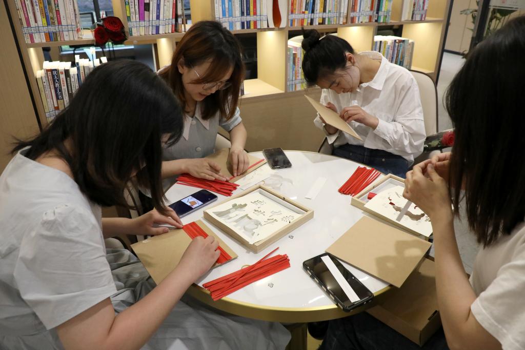 分享结束后,现场教师还进行非遗编织画手工制作,共同体验动手的快乐,增进彼此情感。大家表示,今后将继续保持阅读阅己的习惯,享受职业、家庭、生活、情感多个维度的自己,在阅读中遇见更好的自己。