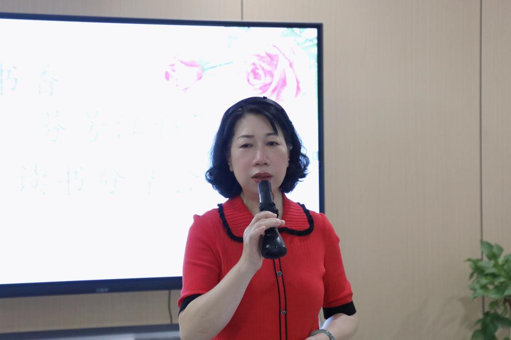 林素君副校长表示,在生活、工作中,我们每天与书为伴。读书让我们成为一个有温度、懂情趣、会思考的女性。读书能够让女人出言有尺、嬉闹有度、做事有余、说话有德,不困于事、不留于俗。她希望现场参加活动的老师们珍惜这样一个缘分和机会,聚在一起相互分享和交流人生的点点滴滴、喜怒哀乐,通过阅读不断地学习和提升自己,成为一个高贵又优雅的新时代女性。