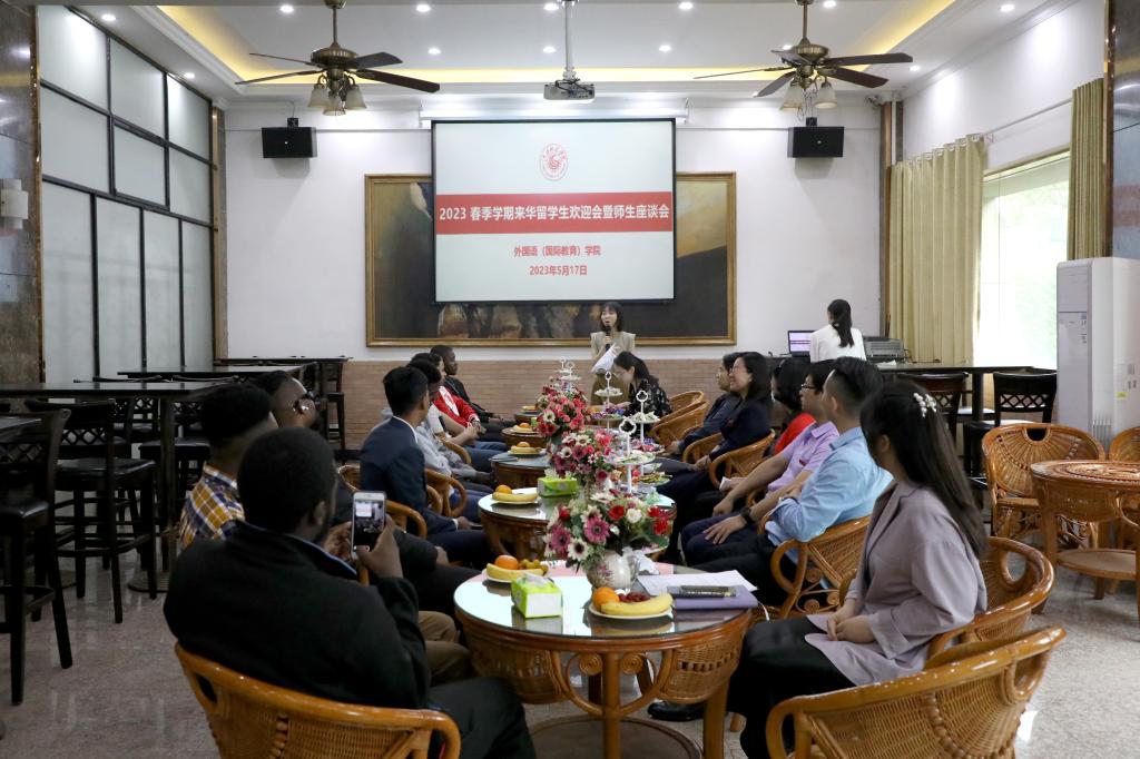 江科网讯(记者 何强江)5月17日上午,2023年春季学期来华留学生欢迎会暨师生座谈会在外国语(国际教育)学院举行。副校长林素君出席并致辞。外国语(国际教育)学院院长李君、学工副院长卞杰、教学副院长游娟,留学生管理科教师,信息工程学院、管理学院教师代表,来华留学生一同参加活动。