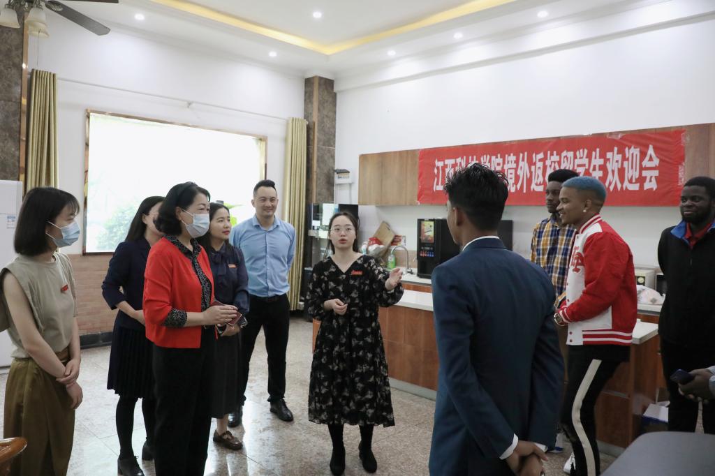 林素君副校长在致辞中对留学生们的到来表示欢迎。她表示,学校现有来自意大利、乌兹别克斯坦、巴基斯坦、孟加拉国等不同国家的留学生在读,同学们的到来给学校增添了新的生机和活力。学校会为大家提供优质的教育和暖心的服务,帮助大家顺利完成学业。她希望留学生们尽快融入江科这个新的大家庭,读懂中国,熟悉南昌,与中国同学广结朋友,共同进步;希望留学生们成为江科的好学生,充分利用学校良好的教学和科研资源,学好专业,增强能力,提升素养;希望留学生们成为各国文明的友好使者,了解中国优秀文化,为增进中国和世界各国的友谊作出自己应有的贡献。