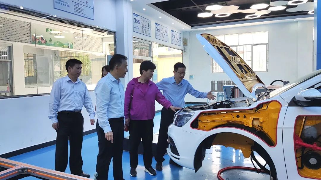邓弘一行实地考察信丰中专两大校区的校园环境、教学设施及实训设备等情况。在手工艺术坊、工业机器人、机电一体化、新能源汽车等实训场所,邓弘与正在备战赣州市中职学校技能大赛的同学们亲切交谈,勉励大家发扬勤学苦练、奋勇争先的精神,争取在比赛中再立新功,在信丰中专省级A档中职学校的光环上再添新彩。