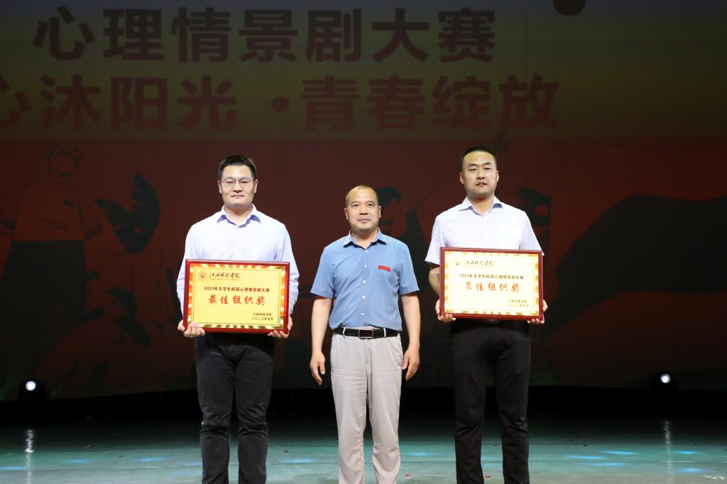 江科网讯(记者 何强江)“要相信,每个人都有独特的优点,每个人都是独一无二的个体。”5月19日晚,在沙龙舞台举行的2023年江西科技学院校园心理情景剧大赛决赛上,一场场引人反思的心理剧表演,再现大学生生活中的焦虑与困惑。校党委副书记、副校长闵桂林与校(党)办、宣传部、校团委、学生资助管理中心、心理健康中心等部门有关负责人以及各学院师生代表一同现场观看。