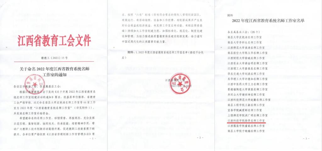 江科网讯(记者 何强江 刘莹)为贯彻落实习近平总书记在全国劳动模范和先进工作者表彰大会上的重要讲话精神和省委、省政府关于深入推进双“一号工程”决策部署,大力弘扬劳模精神、劳动精神、工匠精神,江西省教育工会开展了2022年江西省教育系统名师工作室创建活动。经过申报推荐、严格审核、综合评审等层层择优选树,我校医学院徐萍名师工作室被命名为2022年度“江西省教育系统名师工作室”。