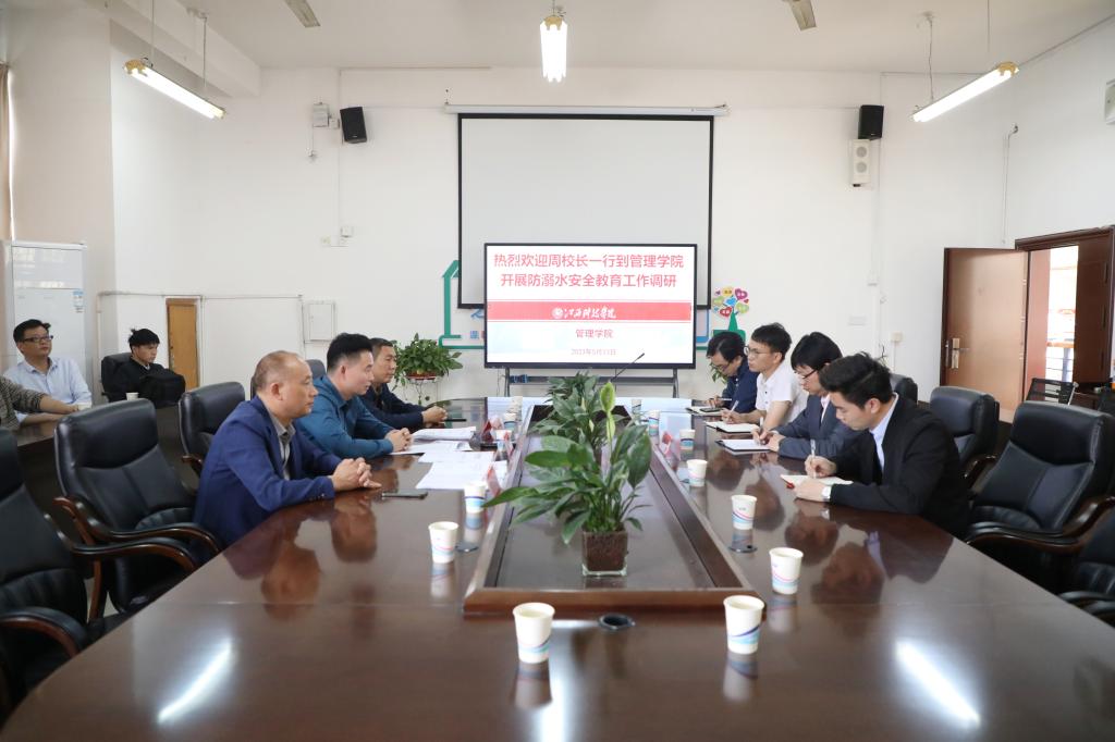 江科网讯(记者 刘莹)为深入推进学校学习贯彻习近平新时代中国特色社会主义思想主题教育,扎实做好调查研究工作,5月23日上午,副校长周冰冰分别来到管理学院、财经学院、艺术设计学院开展主题教育专题调研座谈会,了解各学院防溺水安全教育相关工作情况,听取有关方面意见。保卫处负责人及相关工作人员随同调研。