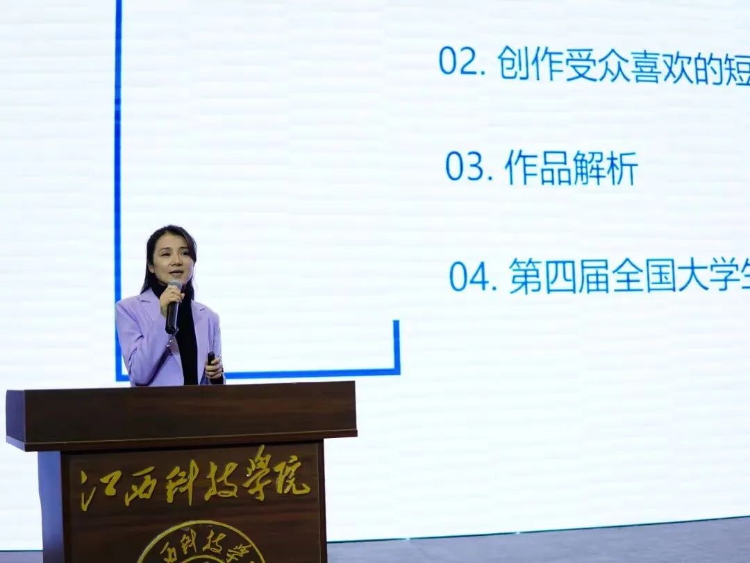 自本次大赛启动以来,文化与传媒学院高度重视,精心组织,积极发动学生参与短视频创作投稿。江西日报社江西新闻客户端总监、赣鄱云融媒学院院长吴志刚针对大赛要求以及特点,为同学们做充分推荐。学院还特邀一线媒体专家——潮新闻客户端运营中心品牌部副主任袁琦以短视频“爆款”制作技巧为主题作专题培训,在分享短视频创作经验的同时对同学们的参赛作品进行现场指导。