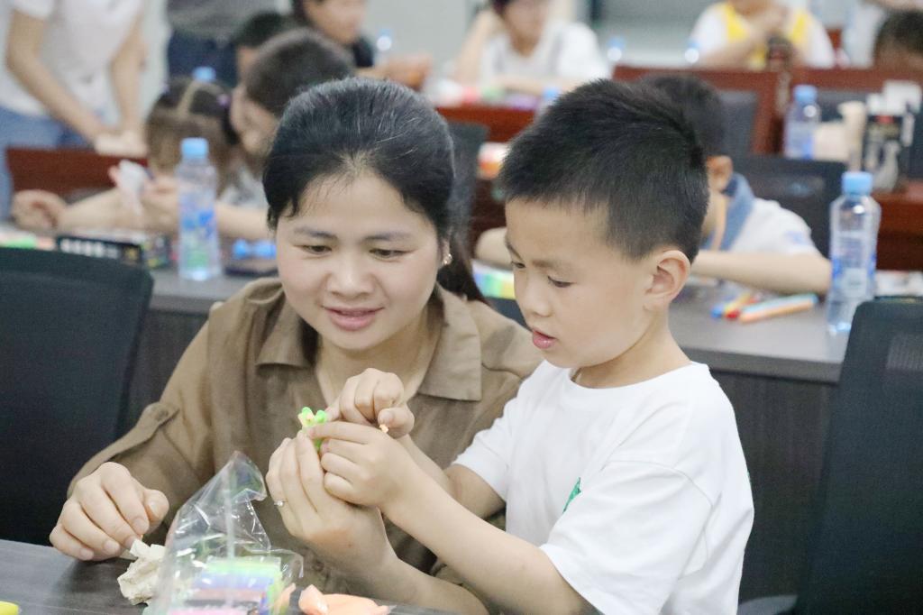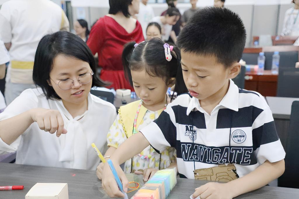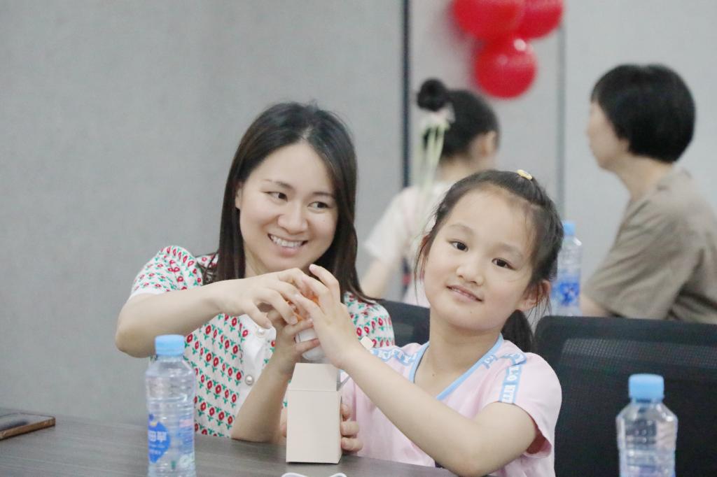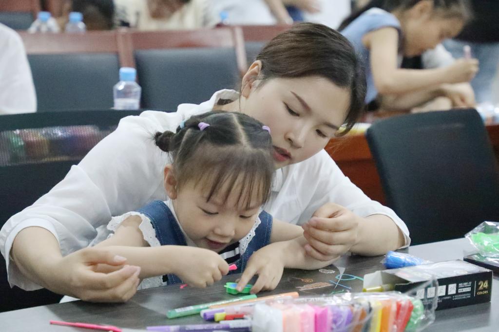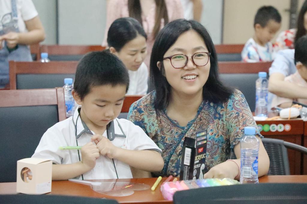 此次“六一”亲子活动由教育学院学前教育专业负责设计与组织,根据不同年龄段儿童特点精心设计了学习奥尔夫乐器演奏、欣赏奥尔夫戏剧表演、乐韵律活动、透明扇子手工DIY四个活动环节。“在小小的花园里挖呀挖呀挖……”在张可老师的耐心指导下,小朋友们很快学会了跟着音乐演奏奥尔夫乐器。大家沉浸在轻松、愉悦的音乐氛围中,用肢体、语言、乐器自由演绎,以独特的方式抒发内心世界。随后,来自学前教育专业的同学们为大家表演了奥尔夫戏剧,带领孩子们跟随小企鹅经历春、夏、秋、冬四个季节,收获了阵阵掌声。泰国、海边、山洞、篝火晚会……乐韵律活动中,肖洁冰老师带着家长与孩子们跟随音乐,充分发挥想象力做出相应的肢体动作,现场欢笑声不断。最后,孩子们与家长一同用画笔和粘土绘制了专属“六一”的透明扇子,并在何海燕老师的鼓励下,踊跃走上台与大家分享自己的设计理念。校妇联还为孩子们准备了精美的小礼物,希望江科二代们感受到江科大家庭的温暖,留下更多美好的记忆。