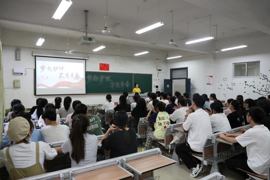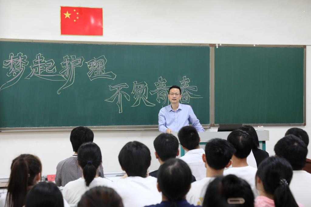 江科网讯(记者 何强江)6月2日下午,校党委书记邓弘以班主任身份走进医学院J11-103教室,与21本护理1班的同学们一起开展“梦起护理 不负青春”主题班会,勉励同学们树立职业理想,勤奋专业学习,苦练本领技能,矢志成长为新时代护理人才。医学院院长刘燕玲、党委书记张溧、副院长刘欢、辅导员王川一同参加班会。
