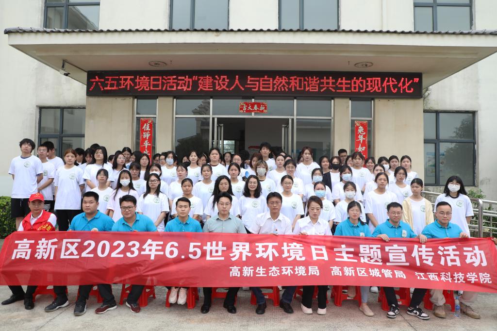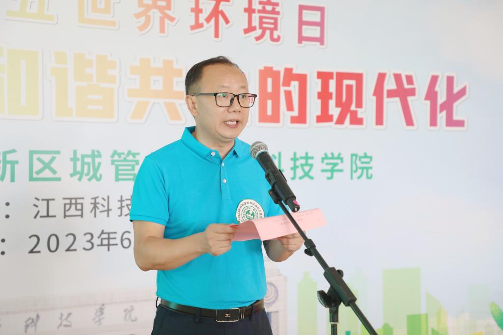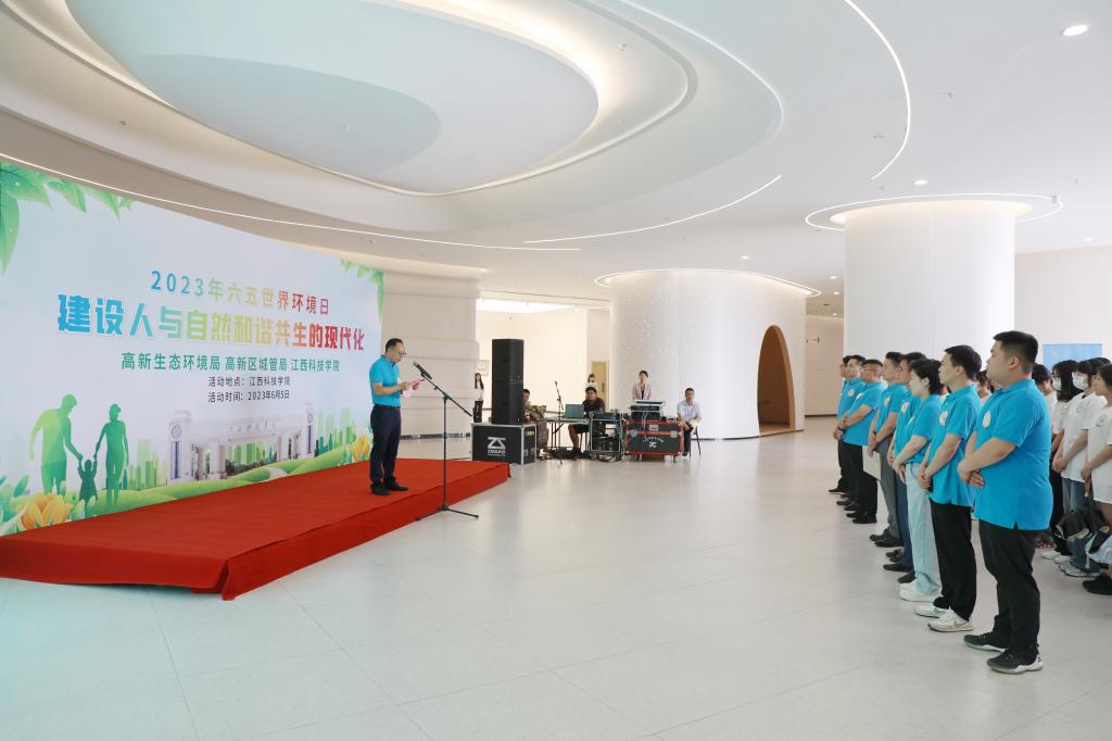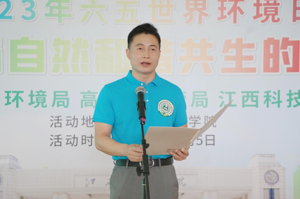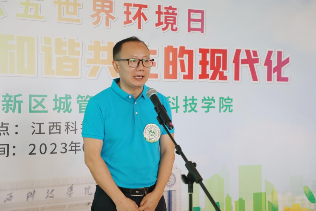 黄禄星局长在致辞中指出,今年是第50个世界环境日,主题为“建设人与自然和谐共生的现代化”。举办世界环境日宣传活动,旨在认真宣传贯彻党的二十大精神,广泛传播习近平生态文明思想,动员高新区社会各界参与建设美丽高新,积极培育生态道德,大力弘扬生态文化,积极投身建设人与自然和谐共生的最美高新。他表示,近年来,高新区生态环境质量改善成效显著,为区经济绿色高质量发展提供了强劲动力;江西科技学院办学质量高,持续提升学生环境保护意识和现代文明素质,获得了社会各界的广泛认可与肯定。未来,希望每一位同学、环保志愿者和工作者,从点滴做起,投入到为生态保护作贡献中来,为建设人与自然和谐共生的“最美高新”作出应有努力。