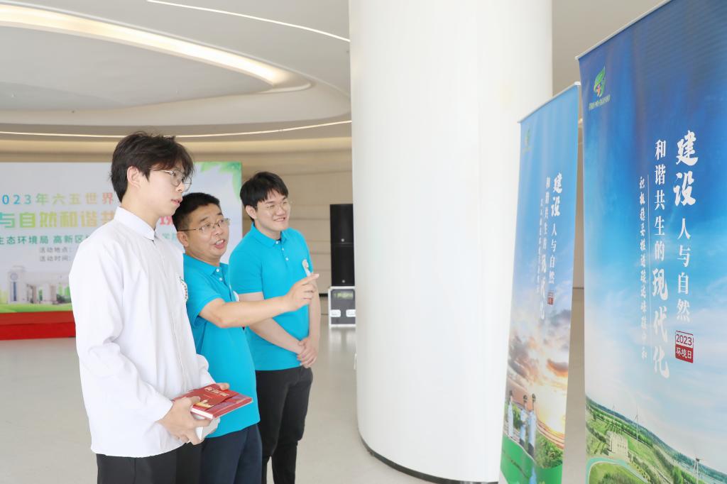 开幕式现场热闹非凡。在领取纪念品后,同学们饶有兴致地观看了生态环境保护相关的宣传视频;在别具特色的宣传展板前,大家频频驻足,对照手中的宣传册仔细观看。同学们纷纷表示,环境保护是一件功在当代、利在千秋的事情,作为新时代青年,应积极响应、主动担当,让低碳环保内化于心、外化于行,为建设美丽中国尽自己的一份绵薄之力。