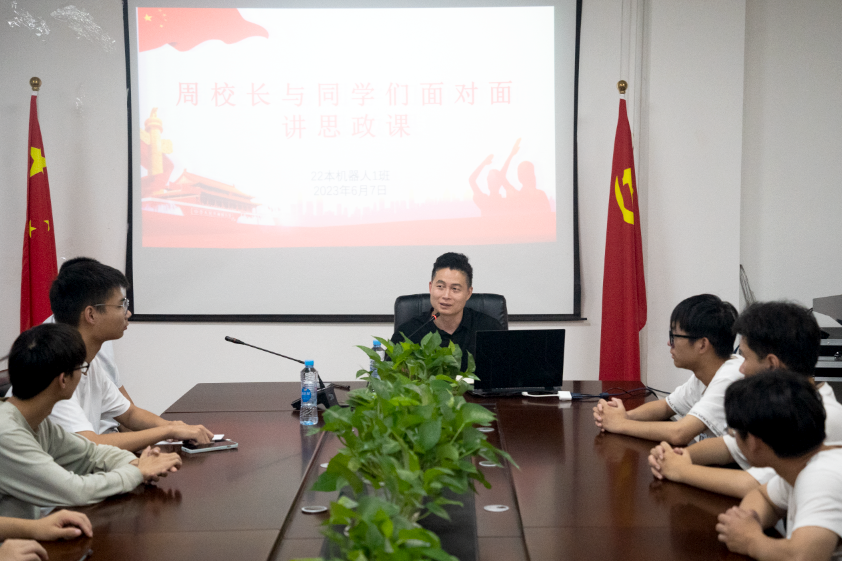周冰冰副校长首先与同学们进行互动交流,并指出科技在国家发展中的重要作用。随后,他围绕“创新驱动实质是人才驱动的战略要求”相关内容展开阐述,使同学们深刻认识到高水平科技自立自强,建设科技强国的重要性。结合同学们的专业,他强调,机器人是国家最尖端的科技领域之一,每位同学未来都会成为国家科技发展中的一员。大家要保持对专业的自信,对自己的自信,努力提升观察和发现能力,将来为国家的科技强国建设作出自己的贡献。
