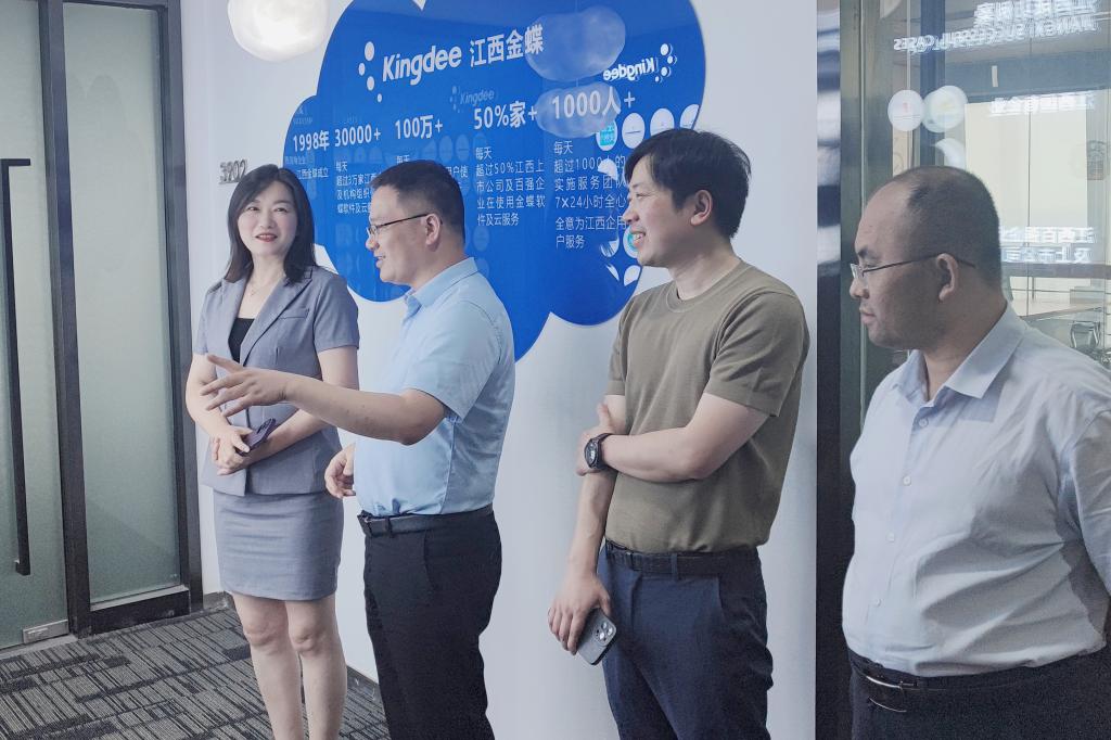 在金蝶软件(中国)有限公司江西省公司总经理吴频的带领下,张海涛校长一行参观公司展厅,详细了解公司的发展历程、业务领域、企业文化及公司经营状况等。