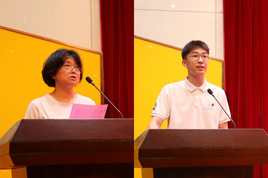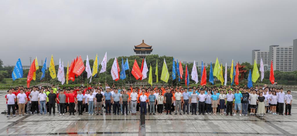 仪式上,邓弘书记、闵桂林副校长以及宣传部部长郭月芳、学工处(部)处长鲁斌、各学院党委书记为各团队授旗。校团委书记马孙亮主持出征仪式、副书记介绍我校2023年暑期“三下乡”社会实践活动基本情况.指导老师代表、马克思主义学院教师武江红,志愿者代表、艺术设计学院学生张志颖分别发言。