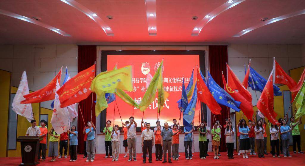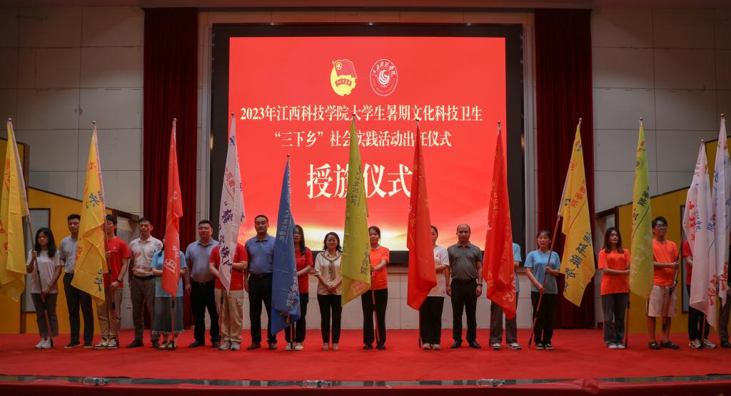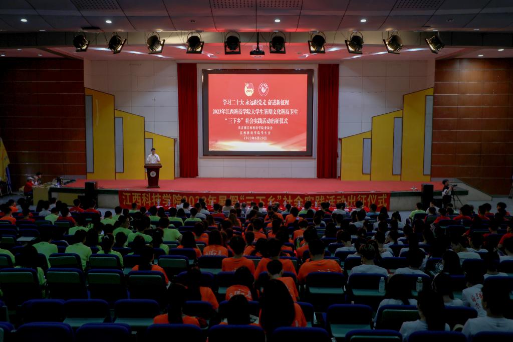 江科网讯(记者 何强江)6月20日下午,以“学习二十大 永远跟党走 奋进新征程”为主题的2023年江西科技学院大学生志愿者暑期文化科技卫生“三下乡”社会实践活动出征仪式在报告A厅举行。校党委书记邓弘,校党委副书记、副校长闵桂林出席仪式并讲话。宣传部、学工处(部)、校团委等部门负责人,各学院党委书记、团委书记,校学生会主席团成员,2023年暑期“三下乡”指导老师、学生志愿者等参加仪式。