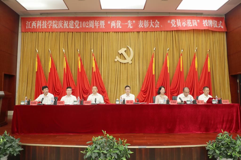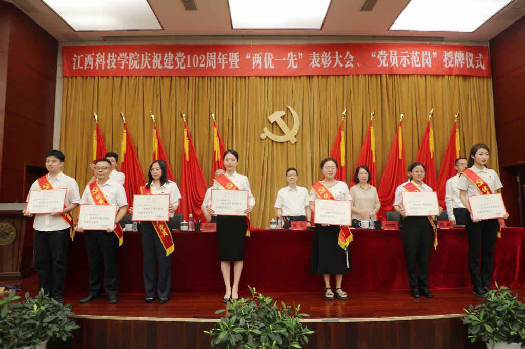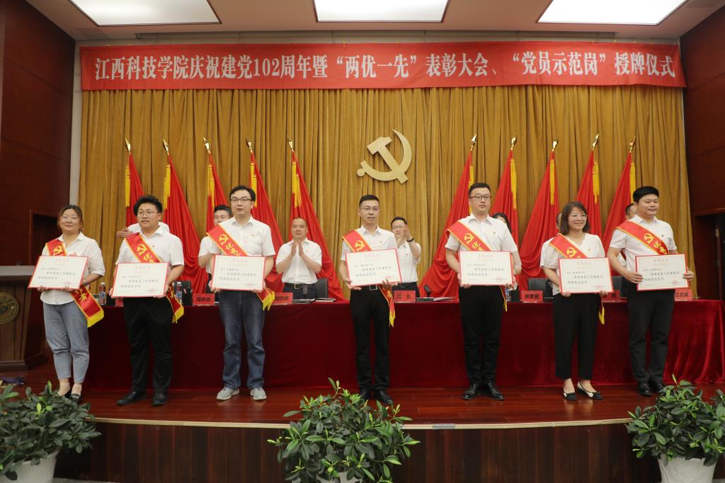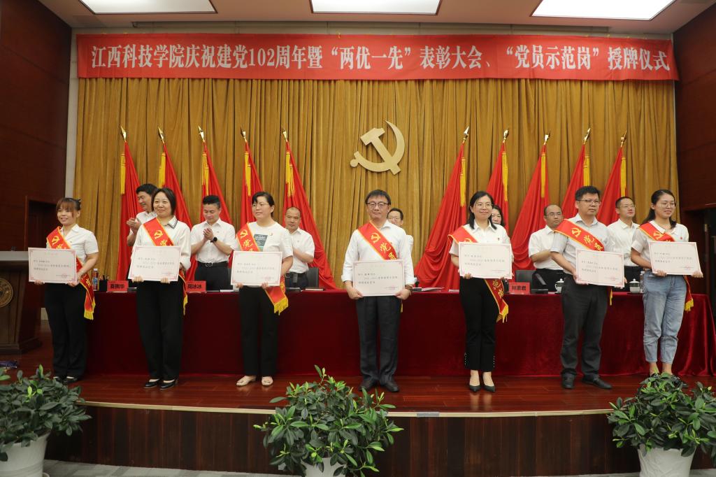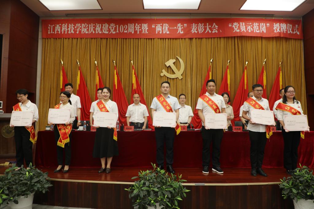 校党委委员、副校长林素君宣读《关于为“党员示范岗”授牌的决定》;校党委副书记、副校长闵桂林宣读《中共江西科技学院委员会<关于表彰2022-2023学年优秀共产党员、优秀党务工作者和先进基层党组织的决定>》。参会校领导为优秀共产党员、优秀党务工作者、先进基层党组织代表颁奖,为“党员示范岗”党员代表授牌。