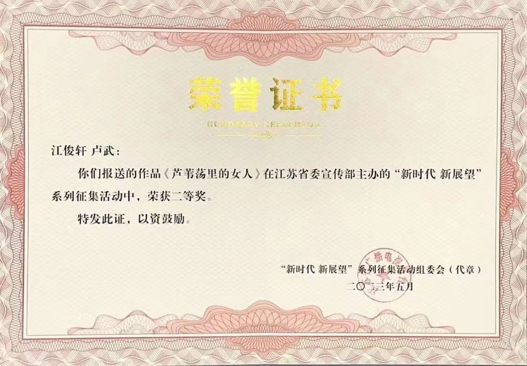 在江苏省委宣传部主办、江苏省广播电视总台协办的“新时代 新展望”系列征集活动中,我校文化与传媒学院22本编导4班江俊轩同学创作摄影作品《芦苇荡里的女人》(指导教师:卢武)荣获二等奖,江西科技学院获得“优秀组织奖”(江苏省外地区唯一获奖单位)。