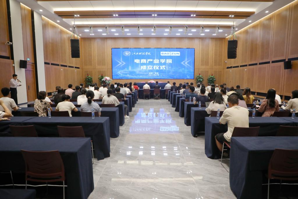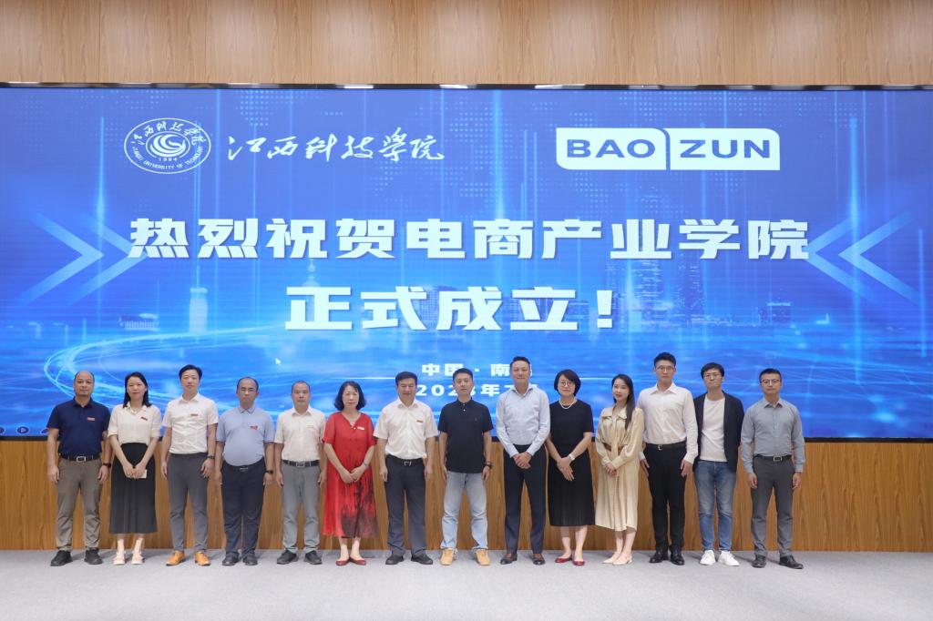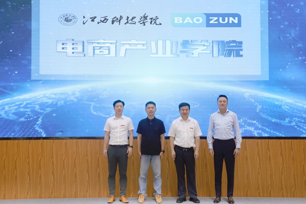 于果董事长代表学校向电商产业学院的成立表示热烈祝贺。他表示,学校近年来积极响应国家“深化产教融合,校企合作”的政策号召,将推进产业学院建设作为重点工作,大力探索和完善产学研融合机制,取得了以赣鄱云融媒学院、光电产业学院为代表的一批具有影响力的建设成果。此次成立电商产业学院,旨在通过开展专业共建、过程共管、人才共育、师资共训、课程共担、成果共享的“六共合作”,进行教育链、人才链与产业链、创新链的“四链互接”,形成校企合作育人共同体,为学生创造更多的实习和就业机会,培养更多适应行业需求的高素质人才。他强调,电商产业学院的成立,是学校深化产教融合建设的又一重要举措,是全力推动产业优势、资源优势、学科优势、人才优势深入融合的有效途径,也是江西科技学院和宝尊电商发展历程上的又一重要里程碑。希望学校全体师生与宝尊电商全体员工共同努力,让电商产业学院为双方带来广阔的发展空间和美好的发展前景,为电商产业振兴和经济社会高质量发展提供新动能,贡献新力量。
