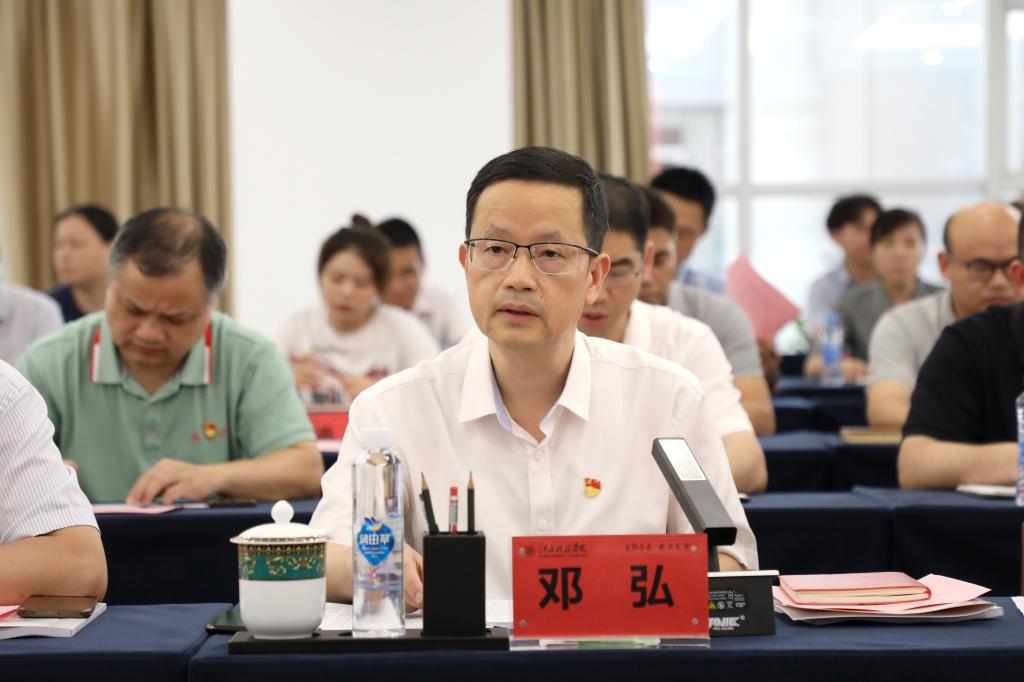 邓弘在讲话中对校领导和校党委委员领题调研情况进行简要点评,对现阶段主题教育取得的成效进行简要总结,就学校推进主题教育下一步的工作提出具体要求。他指出,通过主题教育,学校办学方向更加坚定,办学思路更加清晰,办学条件更加完善,服务师生意识更加主动自觉,工作能力得到不断提升。全校各级党组织要按照省委的要求和委厅主题教育领导小组办公室实践督导组的意见,着力在解决问题、改进工作上下功夫,切实抓好调研成果转化运用,以检视问题整改、推动学校高质量发展的新成效检验主题教育成果。他强调,要强化理论武装,认真学习贯彻习近平总书记关于主题教育的系列重要讲话精神,进一步增强抓好调研成果转化暨检视问题整改的思想自觉、政治自觉和行动自觉,鼓足干事创业的精气神,形成狠抓落实的好局面。要树牢造福人民的政绩观,坚持“以生为本、以师为尊”的理念,以作风大转变推动调研成果大落实,弘扬求真务实之风,发扬斗争精神,勇于攻坚克难,加大调研成果的转化运用力度,更好发挥调研优化决策、改进政策、促进工作的作用,切实把调研成果转化为实实在在的工作成效。要加快整改整治落地见效,积极主动抓整改,聚合众力抓整改,聚焦实际问题,以钉钉子精神扎实做好整改整治工作,推动“问题清单”尽早变为“成果清单”。要按照委厅主题办关于高校暑期主题教育工作的安排,抓好各项工作落实,特别是要撰写好个人党性分析材料,筹备开好民主生活会和组织生活会。