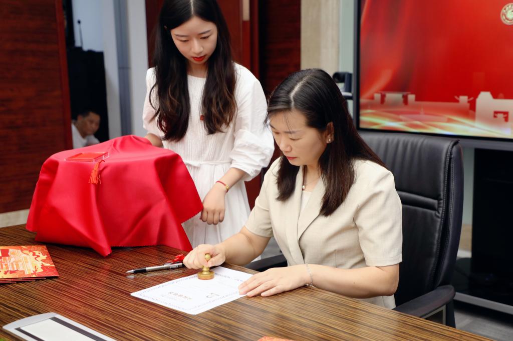 仪式上,闵桂林副校长和陈辉副校长参与录取通知书封装环节,并将第一批录取通知书交给EMS快递员装车寄出。吴丽娟处长详细展示了2023年录取通知书样式及细节,介绍了设计理念。