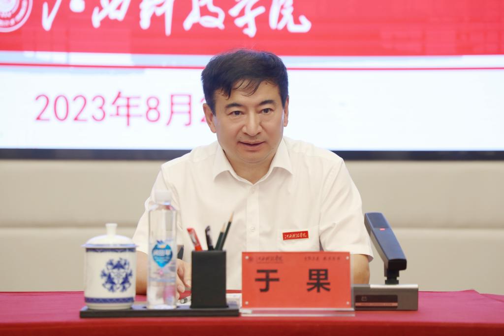 于果董事长在讲话中指出,办人民满意的教育,办一所应用型好大学是我们的目标,也是我们的责任。新一轮本科教育教学审核评估既是对我校本科教育教学和人才培养质量的一次全面总结、全面审视、全面诊断,也是对学校整体办学实力、办学水平和影响力的一次大检阅、大展示,更是学校深化教育教学改革、提升人才培养质量,促进学校发展建设的一次重大历史机遇,做好这次审核评估工作意义重大、影响深远,要对标对表第二轮审核评估要求,打造江科应用型人才培养新样板。