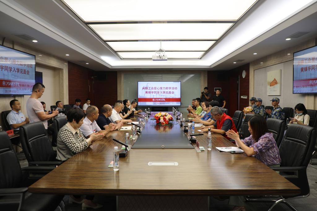 在学校举办的黄镇宇同学入学见面会上,江西省教育工会经审会主任、二级调研员刘永东鼓励黄镇宇同学继续发扬艰苦奋斗的优良作风,珍惜美好时光,遵循老师的教诲、父母的嘱托,把党和政府的关心关爱、工会组织的关怀关注转化为分发学习、砥砺前行的动力,追求更有高度、更有境界、更有品味的人生,在学习的征途上一路高歌,在崭新的舞台上唱响最华丽的乐章。福建省莆田市总工会权益部部长李涛表示,黄振宇同学能够克服磨难、顽强拼搏,全力追求心中的大学生梦想,为广大青年和学生树立了良好的榜样,希望他接下来在老师和同学的帮助陪伴下,更快更好地融入学校的学习生活,最终学有所成。校党委副书记、副校长闵桂林在主持时表示,黄镇宇同学虽然是个盲人,但内心敞亮、积极乐观、自信自强,就像一束光,照亮他人、引领他人。爱心奉献是学校一贯的遵循,学校将通过经济资助、生活关照、学业帮扶、心理关爱等给予全方位的帮助,助力黄镇宇同学成长成才。黄镇宇表示,自己只是一个普通人,但是却麻烦大家这么多,从大家的身上他感受到这种爱的力量和继续拼搏未来的勇气,在大家的帮助下将更加努力学习,争取考上研究生,做一个担当、温暖、有能力爱别人的热心人。最后,黄镇宇还现场动情朗诵《相信未来》。江西省总工会保障服务部副部长林岚、四级调研员王占帅等一同参加见面会。“无比感动和感恩,我们放心了。”黄镇宇的母亲吴秀青说,闽赣两地工会将共建,为镇宇的大学生活护航。