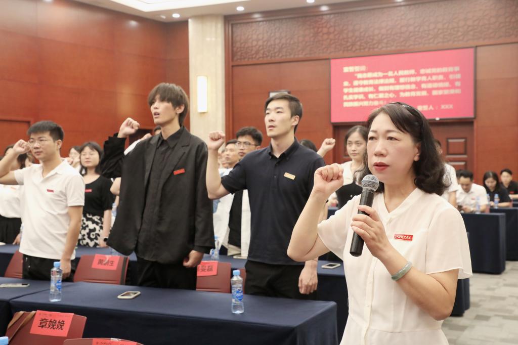 大会表彰“十佳教师”“先锋人物”,感谢他们为学校发展建设作出的突出贡献。校领导为获奖人员颁奖。其间还举行新入职教师代表宣誓仪式。