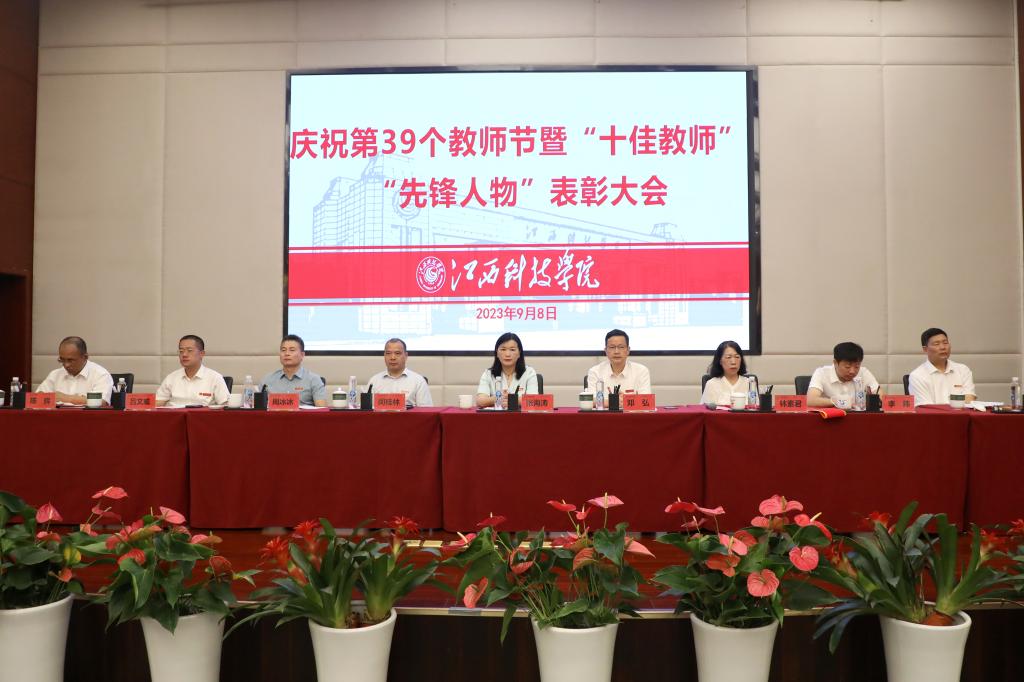 江科网讯(记者 何强江)春华秋实,桃李沁香。9月8日上午,我校在行政南楼第一会议室召开庆祝第39个教师节暨“十佳教师”“先锋人物”表彰大会。校党委书记邓弘出席并致辞,校长张海涛出席并为“科研先锋”颁奖,副校长、工会主席林素君带领新入职教师代表宣誓,副校长陈辉主持大会。全校在家校领导出席。各职能部门负责人,各教学单位负责人、二级学院党委书记、教学副院长,教学、科研、管理、后勤等部门教职工代表等参加会议。