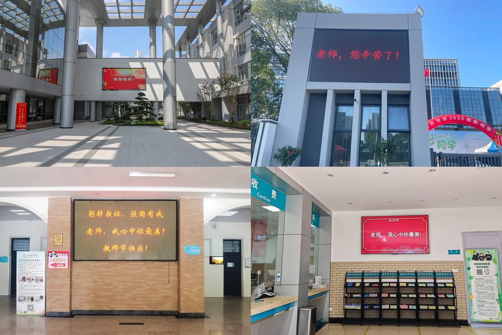 据悉,今年教师节主题为:躬耕教坛,强国有我。在教师节来临之际,全校组织开展了一系列内容丰富、形式多样的主题活动。人工智能学院、城市建设学院、外国语学院、文化与传媒学院等或为教师送上一束鲜花、或递上一张贺卡、或准备一份零食礼包,以此表达对老师的崇敬和感谢之情。校园内电子显示屏以字幕滚动的方式显示“躬耕教坛,强国有我”“老师,您好!”“教师节快乐!”“老师,您辛苦了”“致敬教师”等标语,为教师亮灯,让尊师重教的良好氛围深入人心,蔚然成风,激励广大教师和教育工作者积极投身教育强国建设实践。为引导学生尊师、爱师,校团委社团工作部组织旭日文学社、摄影协会、中医养生社开展“桃李满天下,难忘师恩情”主题活动,为优秀社团指导老师献花,设立服务点为老师免费提供艾灸和按摩。此外,学校还开展师德失范警示教育活动,教育引导广大教师以案明纪、以案示警、以案促改,进一步引导广大教职员工懂政策、知准则、存敬畏、守底线;开展师德教育主题征文、师德师风建设工作优秀案例及师德师风先进个人典型案例评选活动,展现出我校教师教书育人、无私奉献的精神风貌,选树一批在教书育人过程中涌现出来的先进师德模范;开展教师节主题班会活动,共话师恩难忘,倡议学生在教师节通过给老师写一封信、编发一条祝福短信和短视频、递上一杯清茶等形式表达感恩之情。