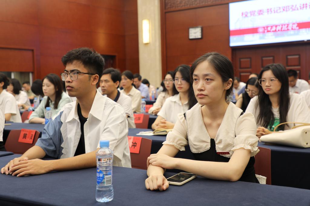 邓弘书记希望全体党员干部和师生员工要牢固树立全校“一盘棋”的思想,在更高站位去审视,从更大格局去谋划,思想认识上“再加压”、工作措施上“再加劲”、责任落实上“再加码”,以“较真”的态度团结协作、攻坚克难、开拓奋进,以优异的成绩迎接新一轮本科教育教学审核评估工作。一是坚定理想信念,做信仰坚定、政治过硬的传道之师。要坚持用习近平新时代中国特色社会主义思想铸魂育人,推进“大思政课”建设,切实强化对学生的思想政治引领。二是陶冶道德情操,做德为人先、行为世范的品行之师。要做学生为学为人的表率,以德立身、以德立学、以德施教的楷模。三是涵养扎实学识,做业务精湛、学识渊博的治学之师。要树立终身学习理念,用精益求精的匠心,上好每一节课、办好每一件事、教好每一个学生,努力成为一名优秀的双师型教师。四是勤修仁爱之心,做甘为人梯、潜心育人的仁爱之师。要充分地理解学生、宽容地关怀学生,用纯洁的爱去润泽学生、感染学生。