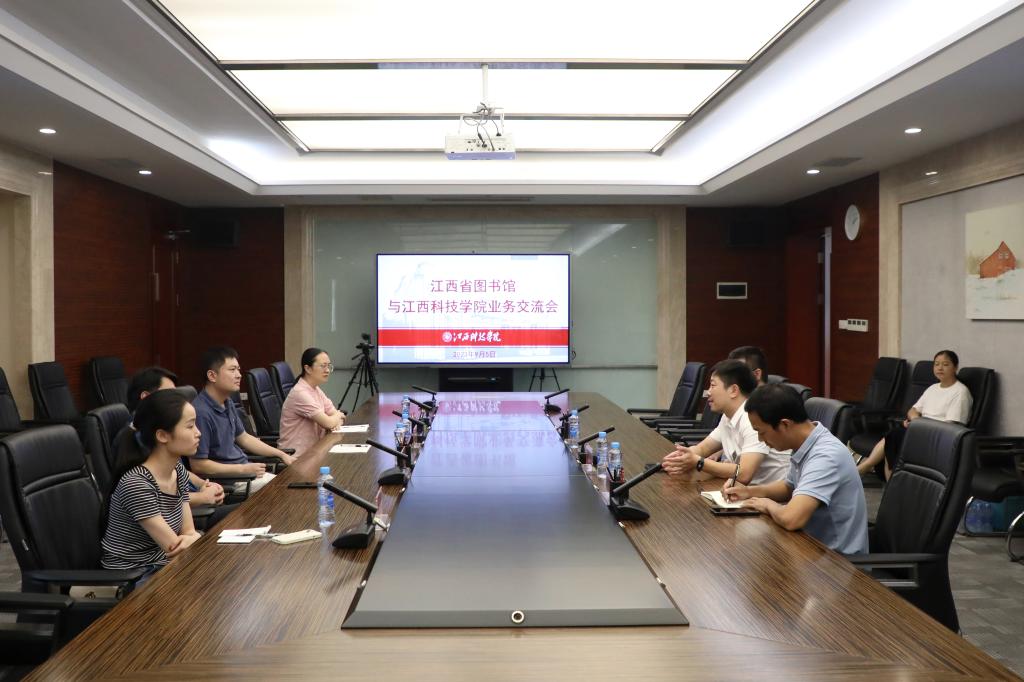 江科网讯(通讯员 吴华亮 记者 何强江)9月5日下午,江西省图书馆党委书记、馆长涂安宁,江西省图书馆学会办公室主任苏文帆等一行四人来校调研。副校长李玮和图文信息中心主任章继涛、副主任吴华亮在行政南楼第三会议室陪同调研。