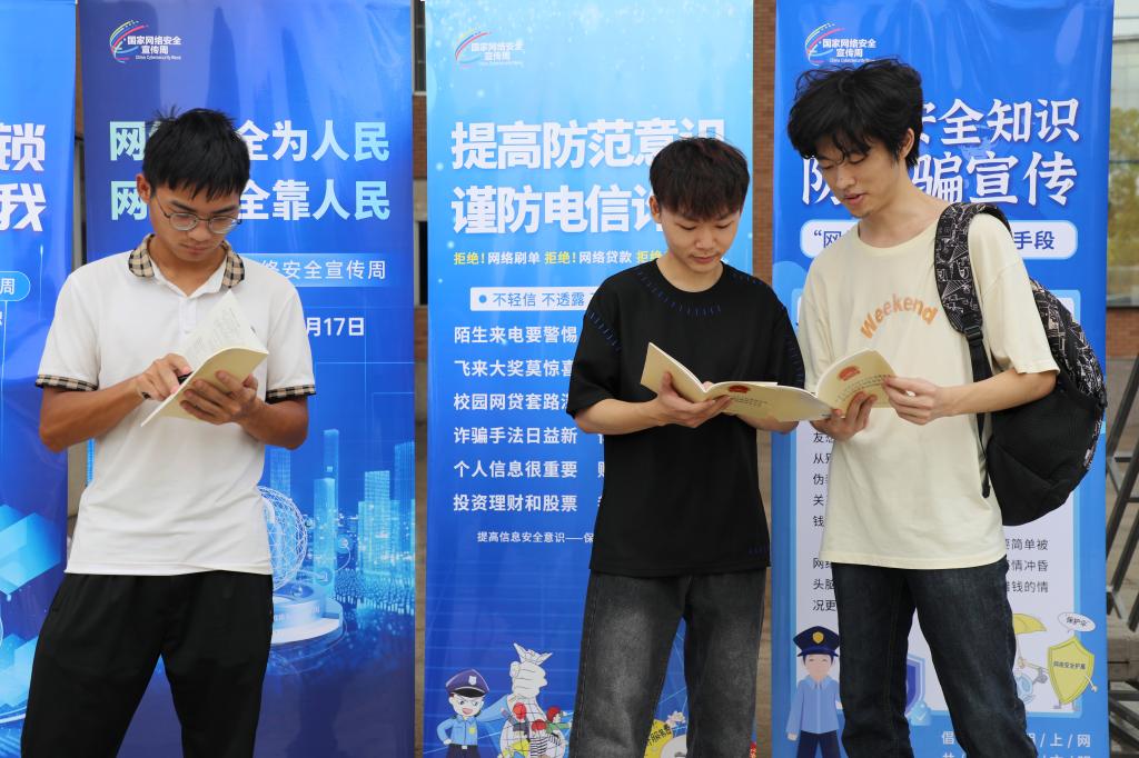 9月12日是网络安全教育校园日。当天下午,学校开展签名和专题讲座活动。校党委副书记、副校长闵桂林,副校长周冰冰,宣传部、信息处、保卫处负责人及信息工程学院师生代表一起在签名墙上签字,并在网络安全宣传海报前驻足阅读,学习网络安全知识、交流网络安全相关经验。闵桂林副校长在现场与同学们亲切地交谈,希望大家认真学习宣传册上的内容,提高防范网络诈骗、安全使用网络的能力;在使用网络时要理性看待媒介中的信息,学会信息甄别,正确使用媒介产品。