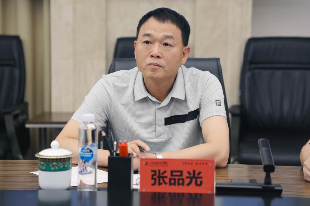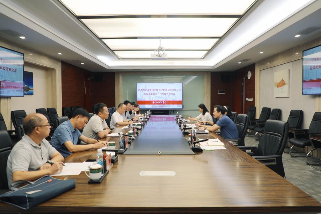 张品光董事长介绍其公司发展情况,并说明来访目的。他表示,江西科技学院在近30年的办学历程中为社会输送了大量人才,希望双方探索合适的合作方式,在人才培养输送、光电产业联合创新等方面开展合作,共同实现优势互补、合作共赢。