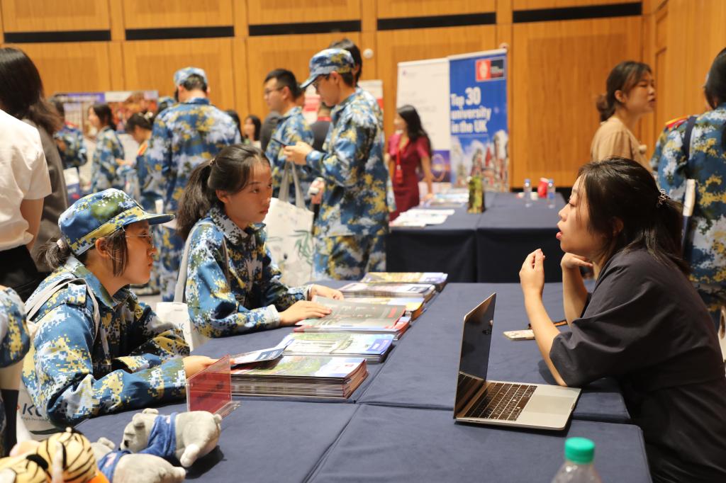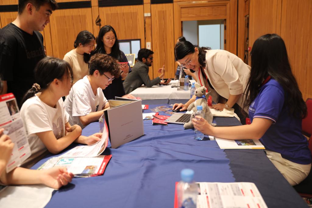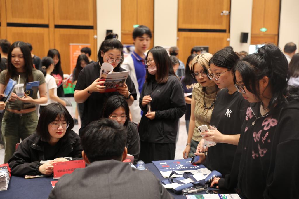 当天下午,国际教育展在J19栋二楼举行,为期2天。来自英国、美国、澳大利亚、马来西亚、新加坡等地的众多海外名校汇聚一堂。名校代表们现场为同学们提供留学规划指导,分享近年来海外留学生毕业就业发展趋势,企业用人标准等多维度相关信息,为江科学子未来留学发展与职业规划提供有效参考。