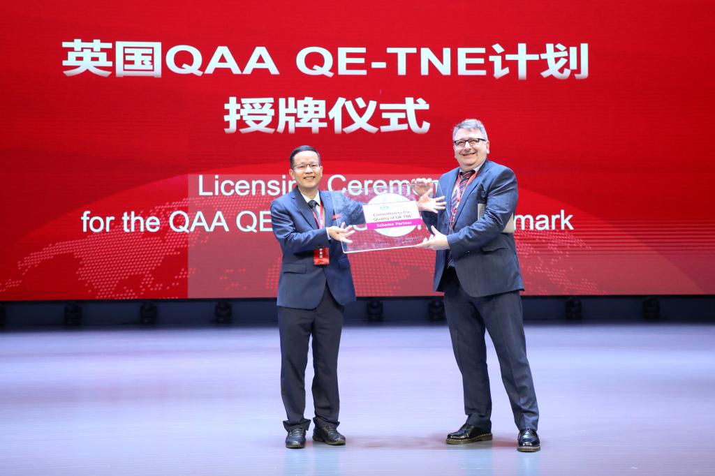 江西科技学院自2021年10月取得QAA机构认证以来,持续提升教学质量,先后通过会计学、财务管理、视觉传达设计、计算机科学与技术、电影学、软件工程等6个QAA专业验证,并于近期取得QAA标志使用权。Dr.PhilDeans代表QAA向江西科技学院的代表邓弘教授授予QAA认证牌匾。