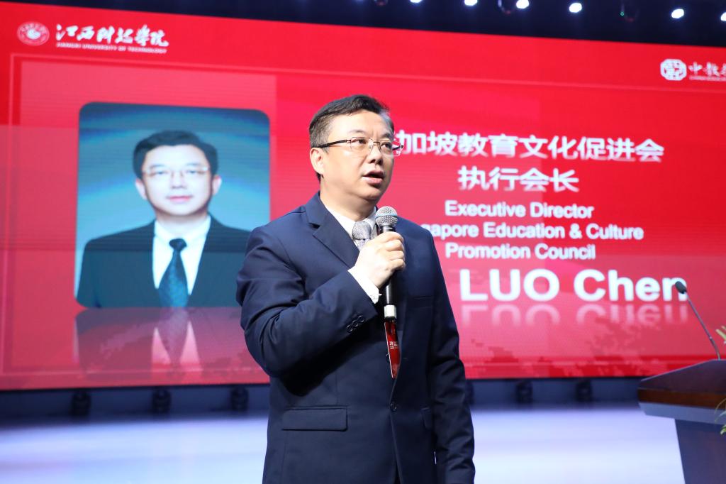 于果先生首先致辞并宣布江西科技学院国际教育展暨首届国际教育论坛开幕。他表示,在我国坚定不移深化改革扩大开放、全面推动高质量发展的背景下,中国教育集团推行国际化发展战略,主动对接全球学术资源,积极开展国际合作交流,与全球70余所高校建立合作关系,构建了国际联合培养平台,为学校提供“寰球培养计划”与“中英联合培养计划”,满足学生获得国际教育的个性化需求,助力学生牵手世界名校,帮助学生成长为具有创新意识、全球思维和世界眼光的国际化人才。期待来自世界各地教育领域的专家、学者在美丽的江科校园尽情交流,共同探讨新时代高校国际教育发展之路。