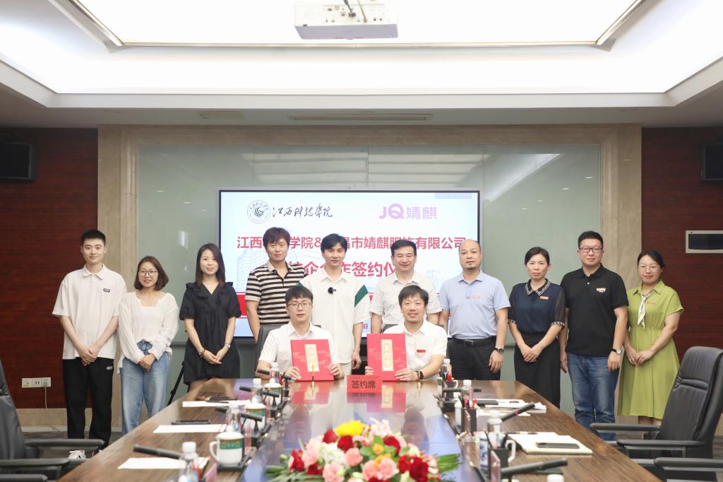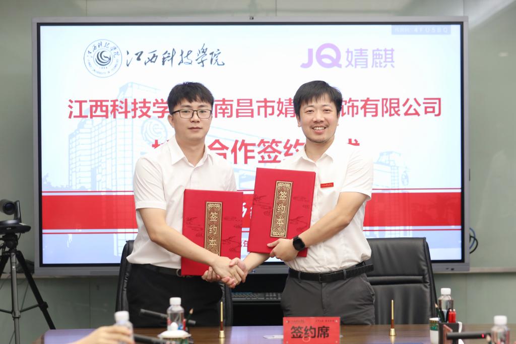 江科网讯(记者 刘莹)9月26日下午,我校与南昌市婧麒服饰有限公司校企合作签约仪式在行政南第三会议室举行。学校创办人于果,婧麒服饰有限公司董事长李嘉庚出席仪式。副校长李玮,校企合作处、文化与传媒学院、管理学院负责人及相关工作人员;婧麒服饰有限公司副总监刘加斌、人资经理高明明、直播主管高转、直播统筹揭远、人资主管毛陈莹参会。仪式由李玮副校长主持。