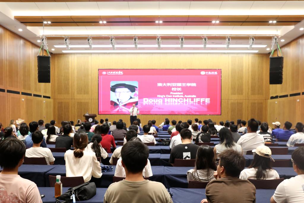 考察交流期间,Dr. Doug Hinchliffe出席学校国际教育展暨首届国际教育论坛,并围绕“探索国际教育之路,为精英学生规划未来”这一主题作报告,并热忱欢迎江科学子积极前往澳大利亚国王学院进行交流学习,鼓励同学们努力学习,学有所成、学有所乐。其精彩的演讲博得现场师生的热烈掌声。