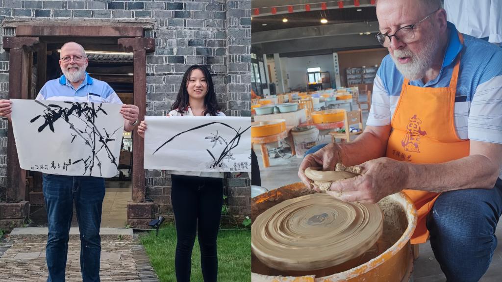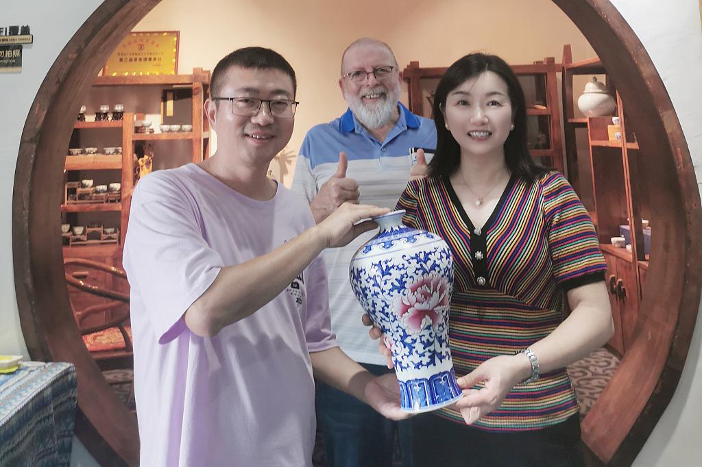 在张海涛校长的陪同下,Dr. Doug Hinchliffe还走进“千年瓷都”景德镇,感受中国陶瓷文化的独特魅力。“中国的瓷器太美了!”仔细了解瓷器的制作过程后,Dr. Doug Hinchliffe惊叹不已,更近距离透过一件件瓷器读懂中国。