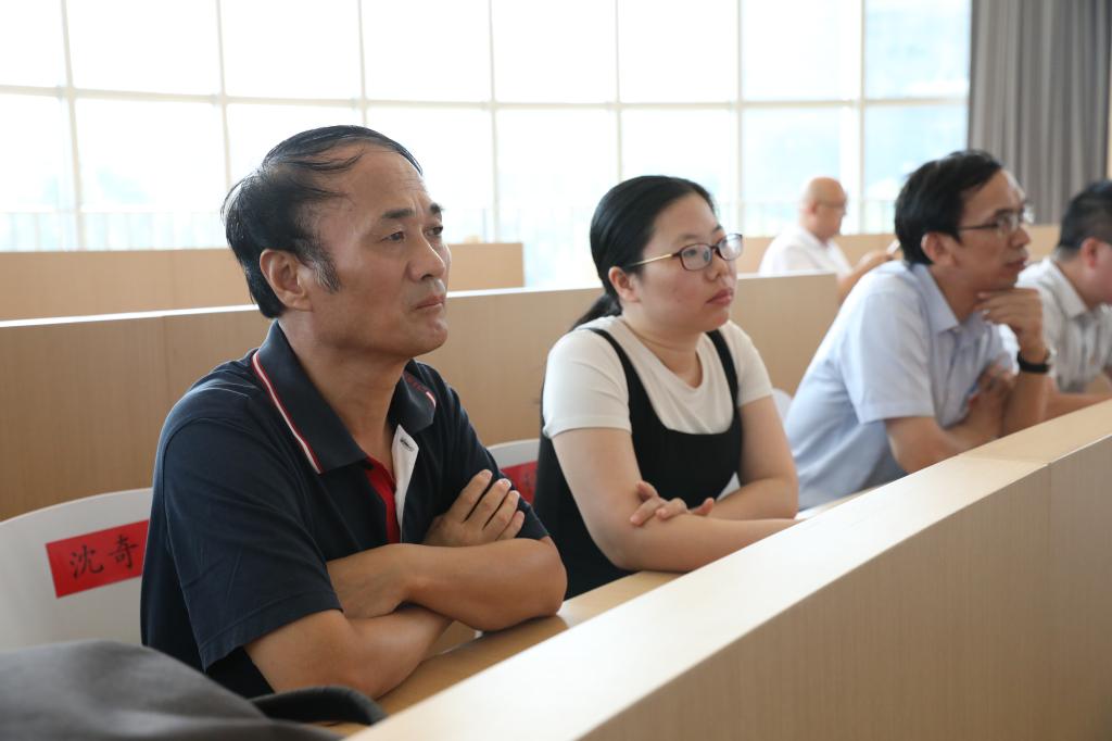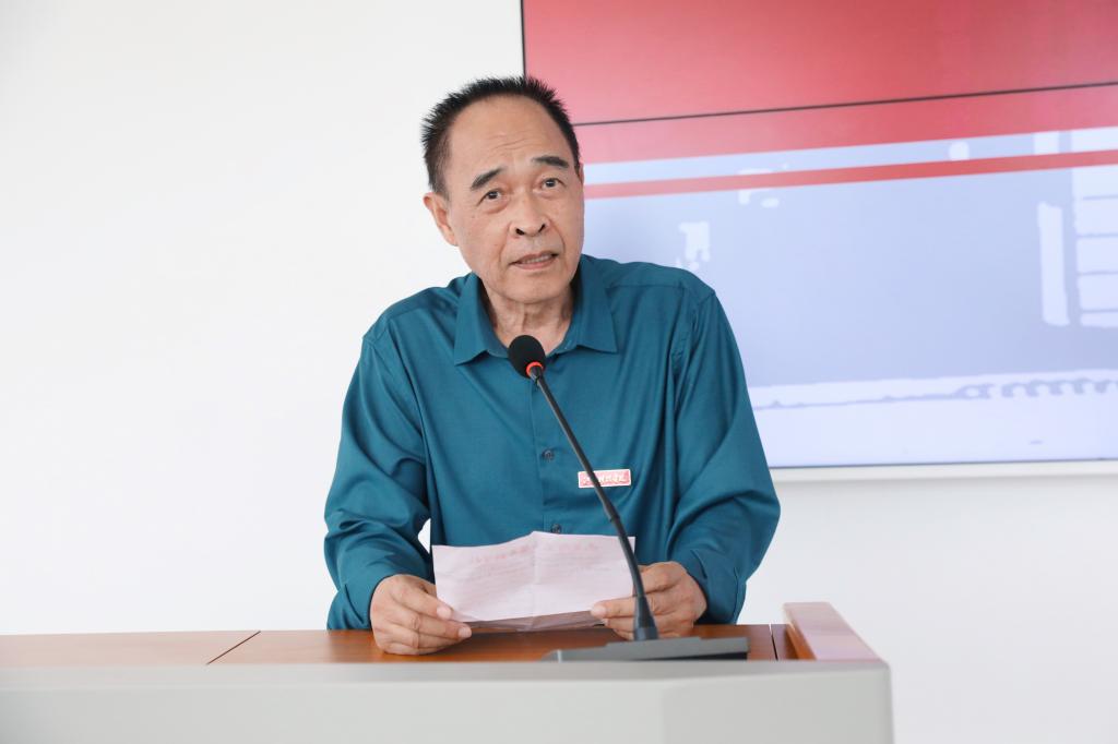 艺术设计学院银龄教师肖大雄教授发言。他表示,学校为老教师提供了发挥余热的平台和再现教师风采的机会,今后将积极融入江科大家庭、遵守纪律、以身作则,为学校发展贡献力量,为党的教育事业奋斗终生。