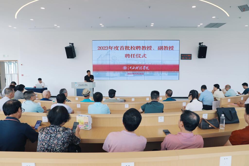 江科网讯(记者 邹珍珍)9月28日上午,我校在湖畔艺术中心讲学厅举办2023年度首批教授、副教授聘任仪式,副校长林素君、陈辉出席并为首批校聘教授、副教授代表颁发聘书。教务处、科研处、校团委、督导处负责人,各教学单位负责人,首批校聘教授、副教授代表参加会议。仪式由人事处处长周小丰主持。
