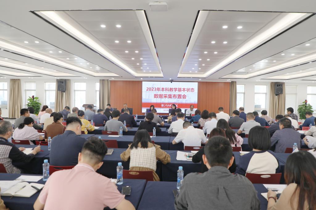 张海涛校长在讲话中强调了本科教学基本状态数据采集工作的重要性。她指出,本科教学基本状态数据采集是教育部对高校本科教学质量开展常态化监测的重要举措,是新一轮本科教育教学审核评估的基础数据来源,各单位要提高站位,高度重视,加强协调配合,认真组织落实,确保采集数据全面真实、环环相扣、准确合规;要精准、审慎填报数据,做到心中有数,决不能“拍脑袋”“我认为”;要严格按照相关要求,落实落细每一项工作,填好每一条数据,呈现理想的数据状态,全面展示办学成效。同时,教育教学评估中心要做好数据填报服务工作,牵好头;要吃透各项政策指标,反复研读每一类别数据的要求,以合格评估基本条件为红线,按照新一轮审核评估的标准,精准指导各部门各单位进行数据填报;要加强组织沟通,对于有疑问的数据,根据实际情况采取多部门现场办公的方式处理,无法把握的数据要及时向上汇报请示,确保织成一张学校数据的平顺网,圆满完成本次数据填报工作,为即将到来的新一轮教育教学审核评估打下坚实基础。
