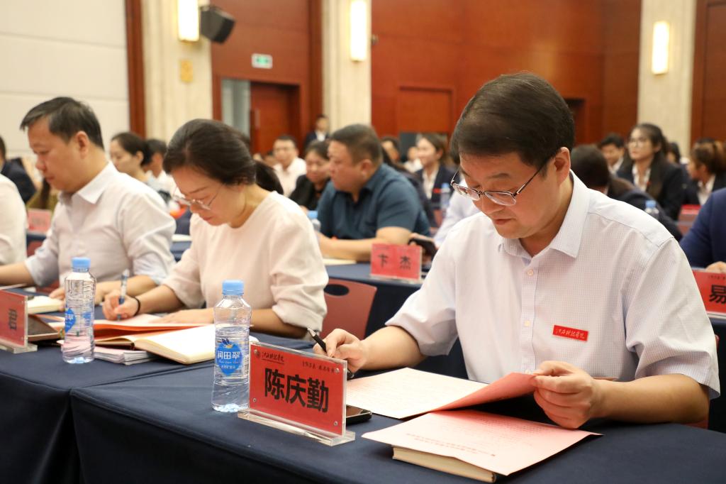 邓弘书记宣读《关于表彰2023届毕业生就业工作先进集体及先进个人的决定》《关于表彰2022届毕业生征兵先进的决定》两个文件,勉励受表彰的先进集体和个人戒骄戒躁,珍惜荣誉,发扬成绩;全校教师以先进为榜样,坚守立德树人初心,心系学生成长发展,为推动学校高质量发展。与会校领导向受表彰的先进集体和先进个人颁奖。