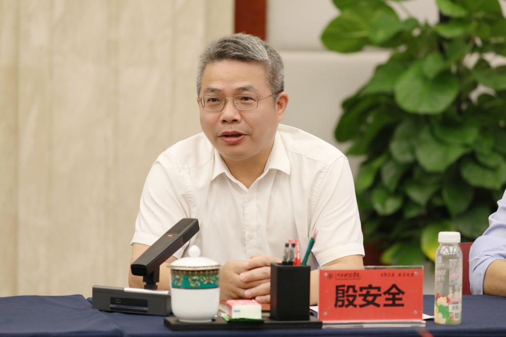 汪胜前书记高度评价了我校硬件设施、办学条件和教学管理。他指出,江科校园精细化管理、资源有效利用、应用型人才培养等方面值得南昌工程学院认真学习,希望未来与江科深入研究双方互补关系,共同加强特色教育、实践教育、专业建设等。他表示,南昌工程学院与我校是“门对门”的好邻居,以后要多多交流往来,在多种场合互相支持宣传,共同为中国教育事业奉献力量。刘祖文校长在讲话中指出,通过本次调研交流,深刻感受到了江科推动民办教育发展的毅力、恒心、成效,充分体会到了江科敢拼、敢想、敢干的冲劲,实实在在领略了“实力江科、魅力江科、活力江科”。他表示,南昌工程学院的发展离不开江科的支持帮助,希望今后双方相关职能部门加强沟通、取长补短,共同改革进步。殷安全书记指出,江科作为民办高校中的一面旗帜,饱含着浓厚的教育情怀,尤其是“于果找党”的故事,更是体现了学校办学的政治性。未来,希望江科继续坚持党的全面领导,坚持社会主义办学方向,坚持立德树人根本任务,写好未来发展新篇章。