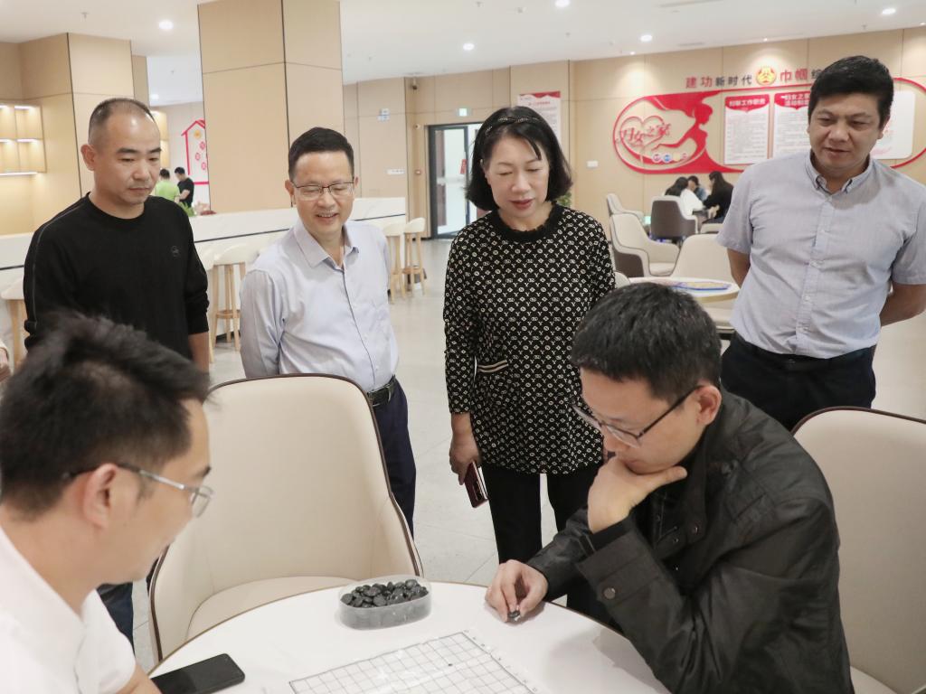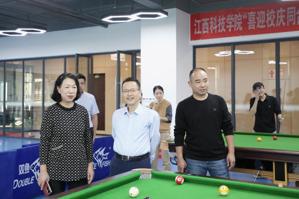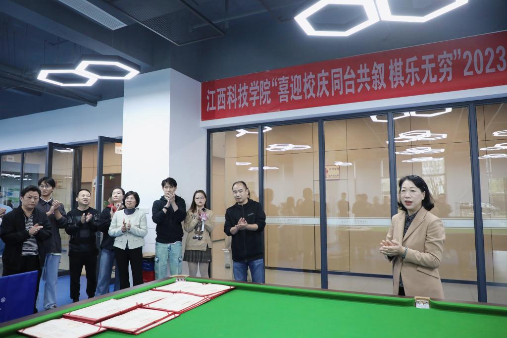 江科网讯(记者 何强江)竞智力赛事,展师者魅力。为丰富广大教职工的业余文化生活,提升学校凝聚力和向心力,增进教职工的团队意识与交流,我校工会组织开展“喜迎校庆 同台共叙 棋乐无穷”2023年教职工棋牌及台球比赛。比赛期间,校党委书记邓弘,副校长、校工会主席林素君到现场为选手们加油助威,校工会副主席刘国安和部分分工会主席负责比赛的组织、人员安排并担任裁判。