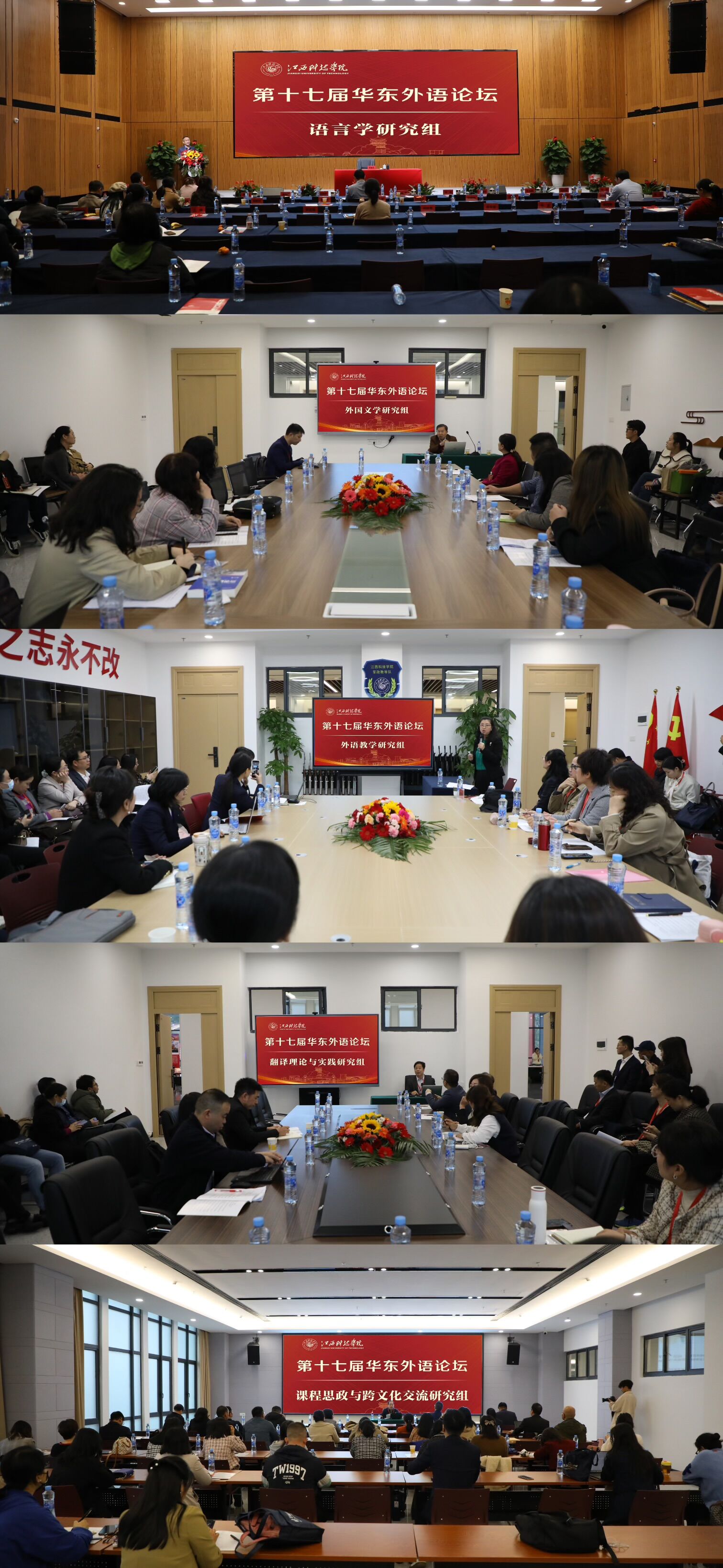 本届论坛主题为“新文科视野下的外语教育高质量发展”。论坛期间,蒋洪新教授、查明建教授,江苏省外文学会副会长、江西服装学院校长薛家宝教授,我校副校长、国家留学基金委特聘专家吕文威教授,上海外国语大学博士生导师史志康教授分别以“新时期外语学科建设刍议”“高等外语教育高质量发展与学科专业体系建设”“新时代外语专业教学改革与学科建设——以应用型本科院校为例”“教育在数字化背景下的新目标和新形势”“跨文化对话——《论语》翻译与阐释”为题作主旨报告。此外,本次论坛还设有语言学研究组、外国文学研究组、外语教学研究组、翻译理论与实践研究组、课程思政与跨文化交流研究组5个交流小组,分别由江西省外语学会党支部书记李勇忠教授,副会长唐斌教授、胥懋云教授、徐翰教授、何明清教授主持。九江学院外国语学院院长周志高等50位专家学者就“论叙事中声音的再现方式”等问题作精彩发言报告。