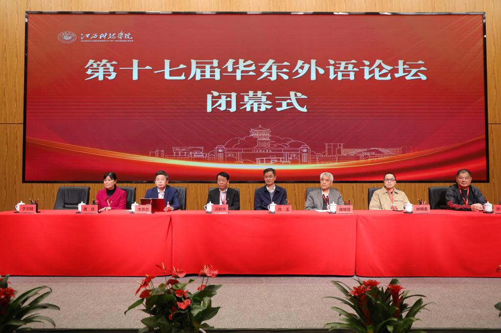 闭幕式由江西省外语学会副会长兼秘书长于洪颖教授主持。各小组论文交流组长作小组总结发言;与会领导为优秀论文获得者颁奖;下届华东外语论坛主办学会代表、浙江省外文学会常务副会长庞继贤教授发言,表示将全力以赴、精心筹备好下一届华东外语论坛。